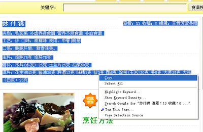 2.选取菜谱相关内容,主料,辅料,这些都是要去购买的,以前都是用笔写下来,现在选取后Copy一下