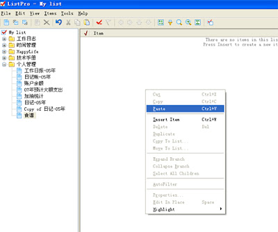 3.电脑端打开ListPro软件,建立个叫菜谱的list,然后选择粘贴