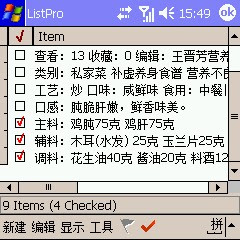 6.粘贴到listpro里也很整齐,传到pda里,拿着一边看,一边做菜,方便的很。